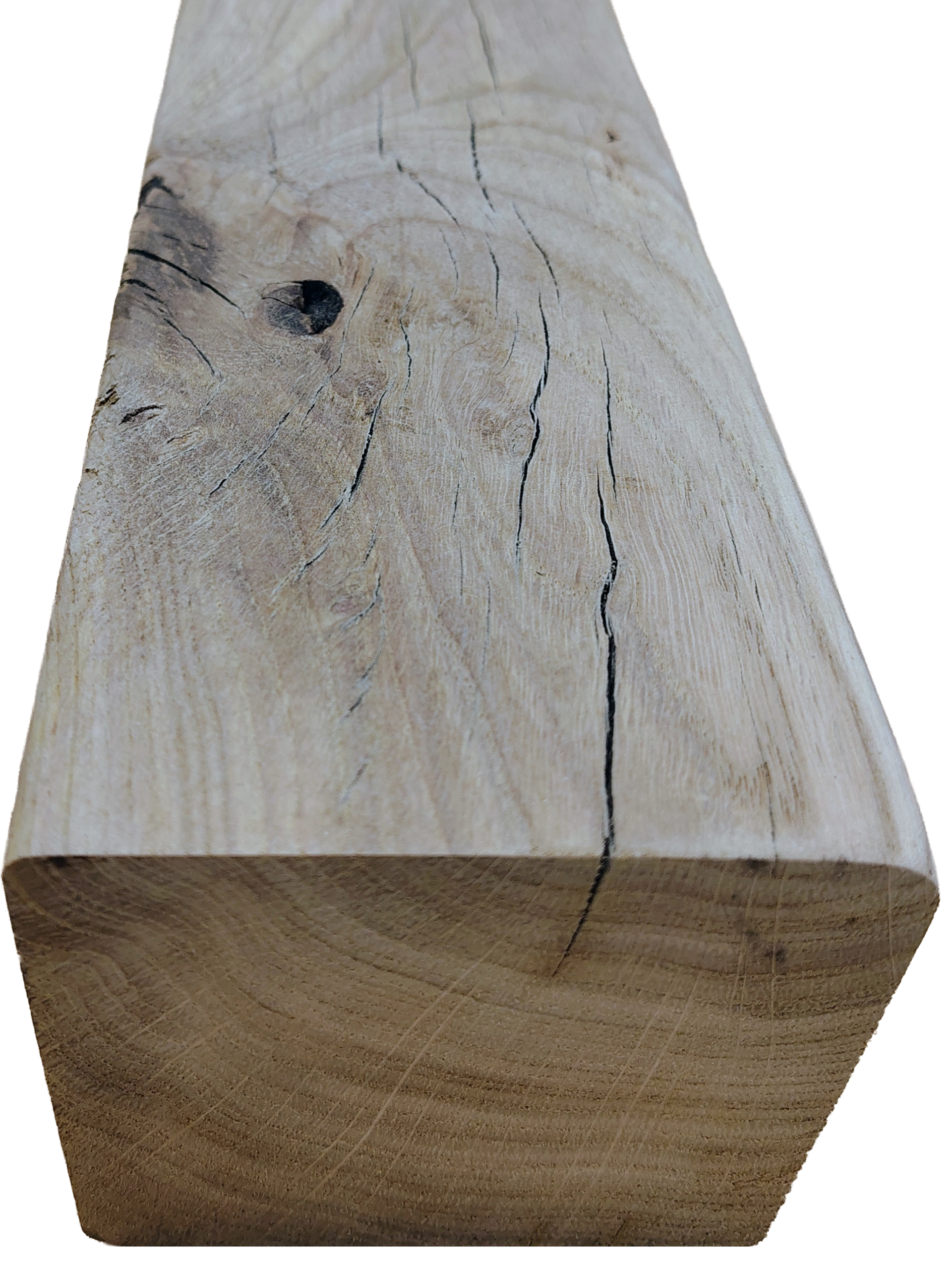 Ready made with planed and eased edged. Taking a 100x100mm two year plus dry oak beam we machine the beam as thick as possible to produce a piece around 92-95mm square with a smooth face and the corners ease for a contemporary look. Available in lengths of 1m up to 2.4m