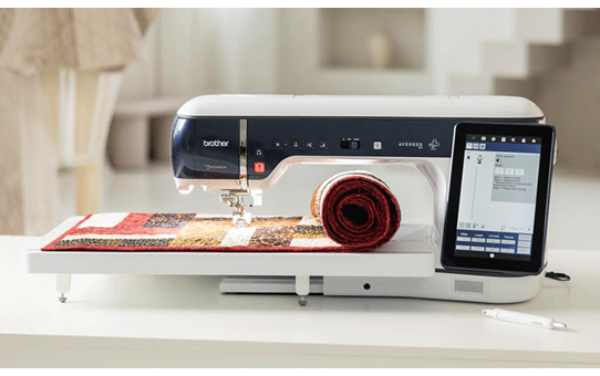 With Brother’s largest ever embroidery area (465 x 297mm), an expansive 450cm² flatbed workspace, and a 358mm long arm, the Aveneer is built for large-scale projects and intricate detail alike. Its Intelligent Stitch Regulator (ISR) with infrared edge detection ensures precision, even on free-motion quilting — making complex techniques feel effortless.