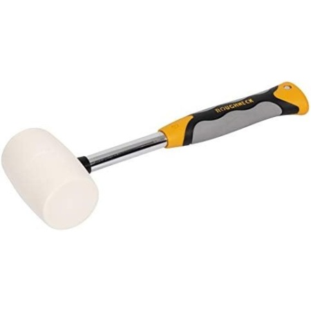 Roughneck Non Marking White Rubber Mallet has a single piece rubber head with a steel and soft grip handle. For general industrial use, these semi-hard rubber mallets give a gentle but firm blow with little rebound, ideal for use under damp conditions or outdoors.