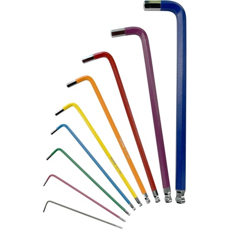 Hex Keys, also known as Allen keys, are simple tools used to drive bolts and screws with hexagonal sockets in their heads. The new Eclipse Hex Key set has 9 different sizes of easy to identify, colour-coded keys featuring Ball end heads designed to make it easier to slide the key into the receiving slot, allowing you to reach an offset 20 degree angle, so you can feel your way to the needed position more quickly.