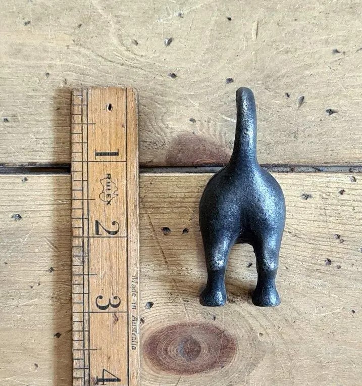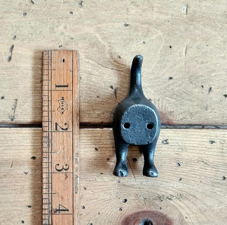 The Dog Tail Coat Hook offers a charming and whimsical touch to your home. Crafted from cast antique iron with a light finish, this hook features a unique design inspired by a playful canine tail.