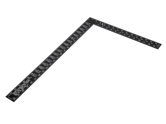 The Faithfull Roofing Square, also known as a Rafter or Framing Square, is a common favourite for carpenters the world over. It is suitable for many roofing and general woodworking projects. Made from heavy-duty steel with a powder-coated black finish for corrosion protection. Clearly graduated in metric and imperial with conversion charts printed on the reverse.