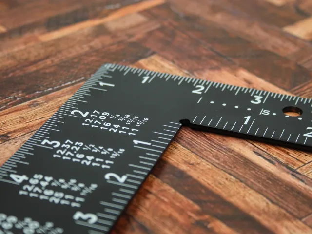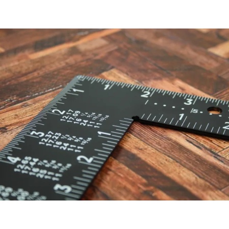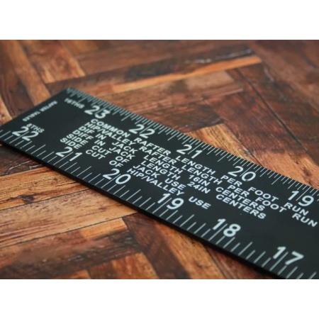 The go to tool when hand cutting a roof. Hips, valleys, bird beaks, plumb cuts and overhang cuts can all be determined using this square. Rises and pitches can also be calculated using the unique conversion chart on the square itself.