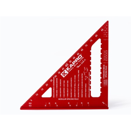 The Kapro 447 Mason Square with 3 masonry specific scales: standard masonry rule (standard spacing), modular masonry rule (layout of commercial masonry) and oversized masonry rule (oversized spacing).