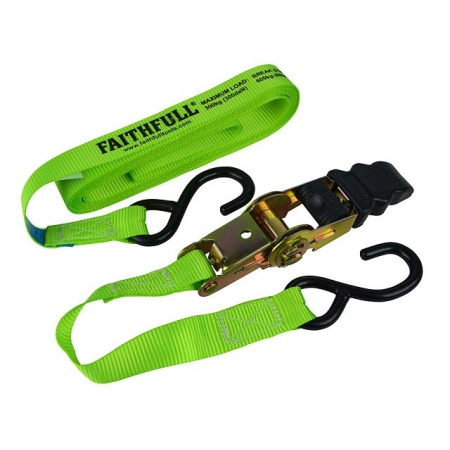 Faithfull ratchet straps are designed for ease of use and are fitted with integral ‘S’ style steel coated fixing hooks, which have a and quick release mechanism. They have an automatic locking ratcheting action and a cushioned thumb grip for user comfort.
