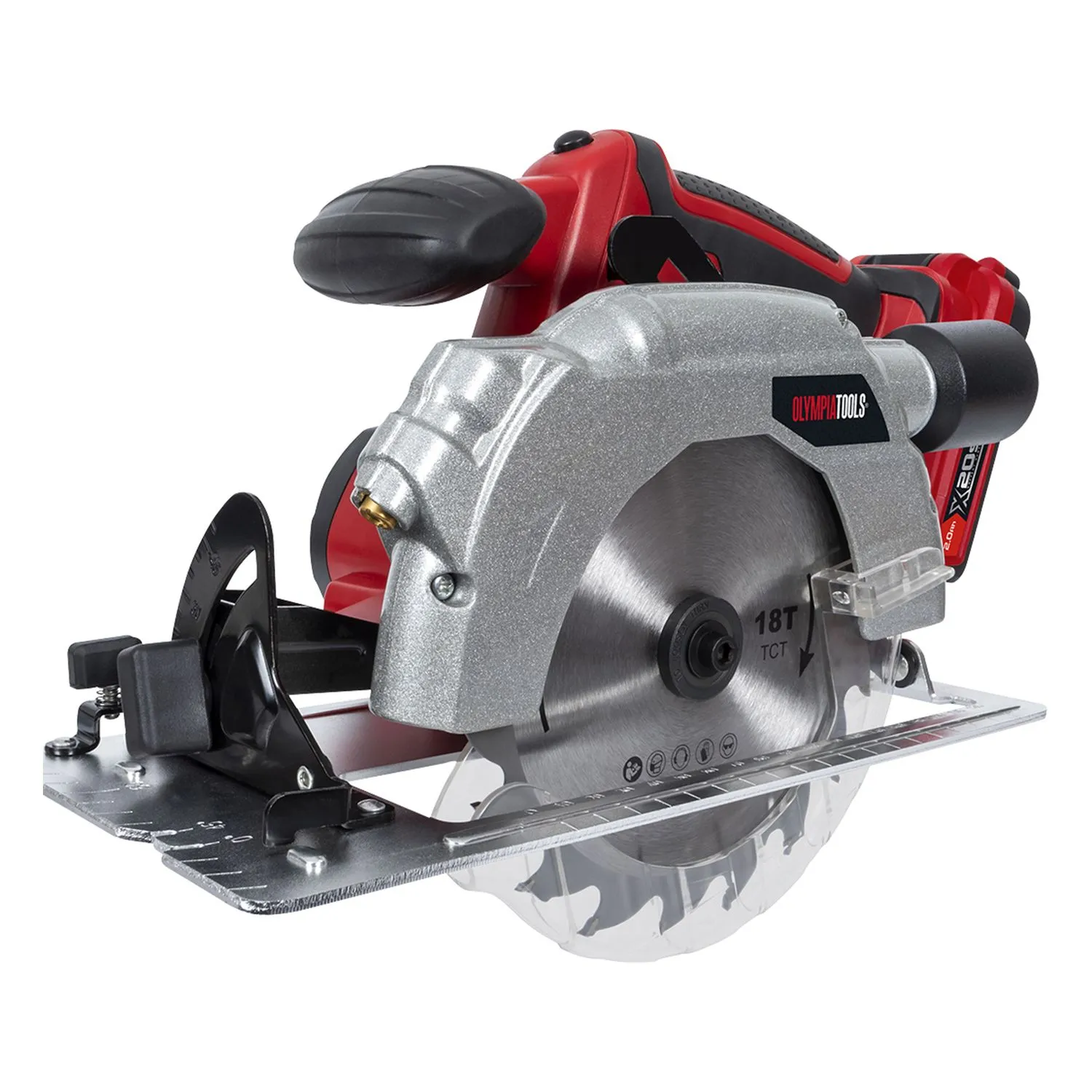 The Olympia Tools X20S Circular Saw has an adjustable base for cutting bevels up to 45 and a handy laser guide. Fitted with a comfortable, soft grip handle for reduced fatigue and increased control. There is also a handy vacuum port that enables direct connection to a dust extractor. Supplied with 1 x 20V 2.0Ah X20S Li-ion Battery, 1 x X20S Fast Charger, 1 x TCT Saw Blade 165 x 20mm, 1 x Parallel Cutting Guide and 1 x Hex Key. Specification No Load Speed 4,300/min. Blade (Ø x Bore) 165 x 20mm Bevel Capacity 0-45 Max. Cutting Depth @90 52mm, @45 36mm Charge Time 1 hour Weight 2.66kg
