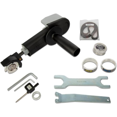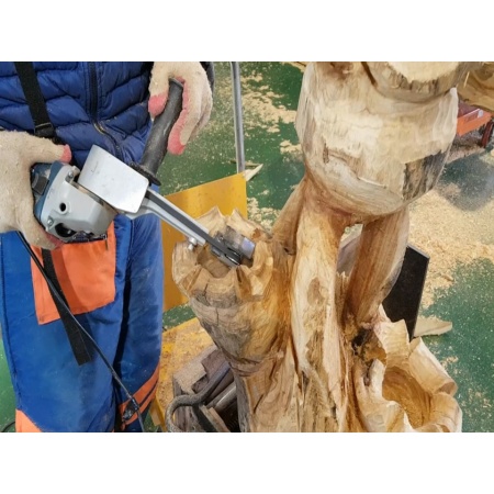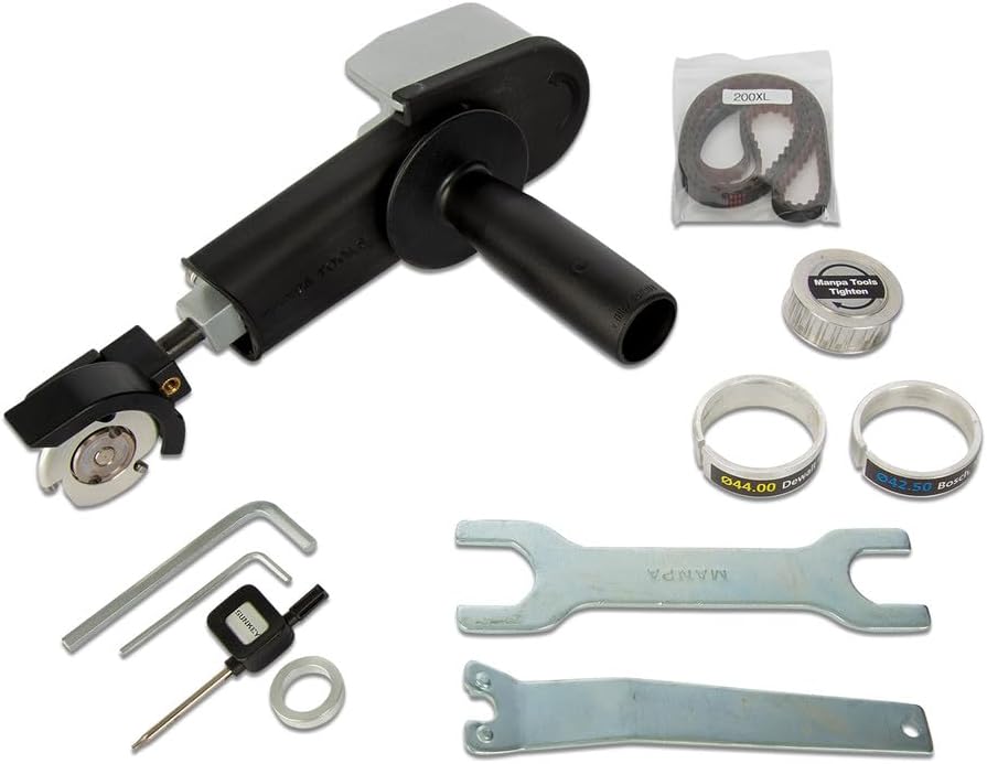 The Manpa 2″ Belt Cutter grinder attachment basic kit is a great starter kit for beginners and wood carvers. Kit includes a 2″ 6mm circular cutter for smooth carving with sharp carbide. Great for detail and sculpting performance. Max blade diameter 45mm. Max carving depth 10mm. Max RPM 16,500. Features: ① Changeable System – Basic diameter : 45 mm (½ size of original 4” angle grinder diameter) – Various shape & Size wheel : Triangle, Square, Round and Sanding. – Big head change : 3″ Multi Cutter head can be installed ② Replaceable Tungsten Carbide – Easy to change when worn – Circular type for carving any multiple direction ③ Safety Cover – Prevention of kick back – Prevention of sawdust flying ④ Adjustable Body – 90˚ to 180˚ Free angle change system – Basic 160 mm Length – Extension to 270 – 348 mm (with connection tools) ⑤ Timing belt – Vibration Reduction ⑥ Handle – Control kick back safely – Two hands Grip System