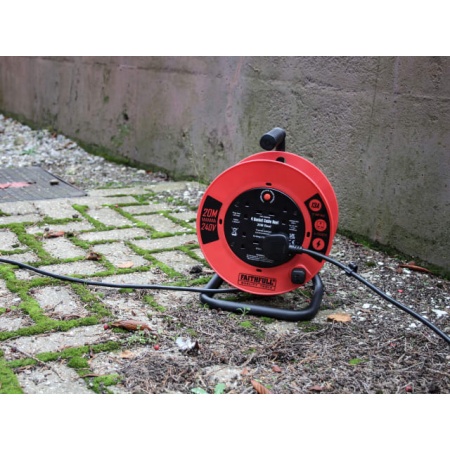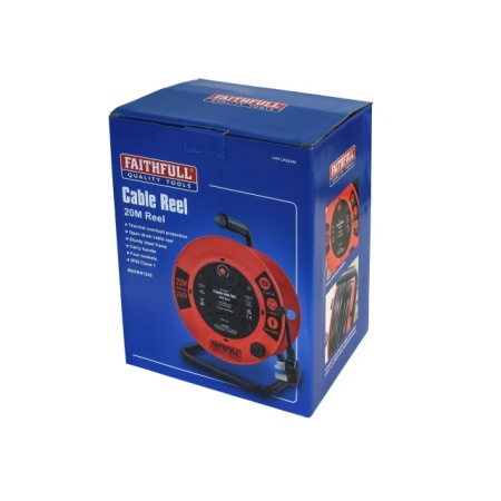 his Faithfull Open Cable Reel has a sturdy steel frame construction. The four outlet sockets allow you to run one or more power tools etc. A winding knob for easy and tangle free reel-in. Fitted with a carry handle for easy movement around the worksite or home.
