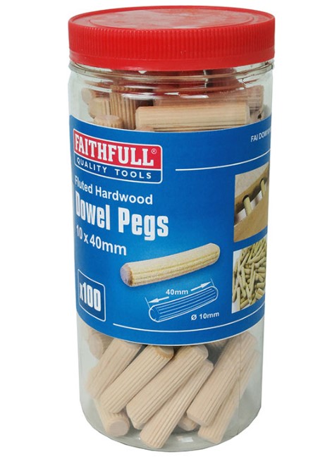 The Faithfull FAIDOW10100T fluted wood dowels comes in a tub of 100 with the following dimensions: