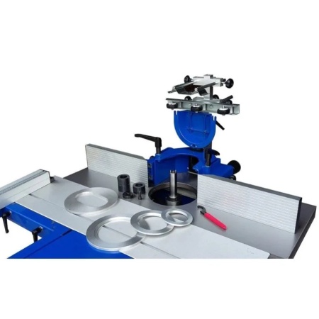 Supplied with set of spindle spacers, table inserts (80mm, 110mm & 150mm), 1/4″ & 1/2″ routing collets, 2.0m power cable, 16amp industrial plug.