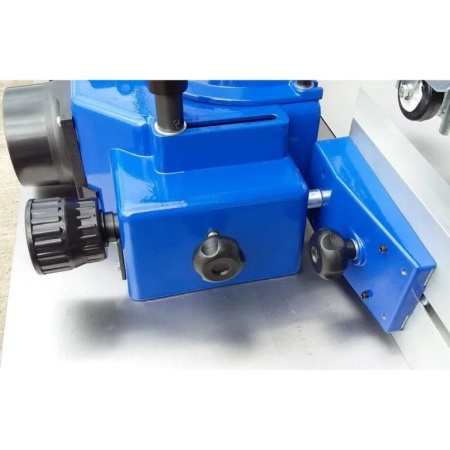 Further versatility is provided by the backwards tilt facility. The spindle hood is of cast alloy and is fitted with long, fully adjustable fences, a vertical hold down, front clamp and a 100mm dust outlet. A hinged lid allows for easy access when setting the tooling.