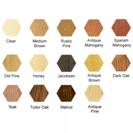 Available in clear, which maintains the natural colour of the wood, and 13 wood shades to stain and wax in one operation.