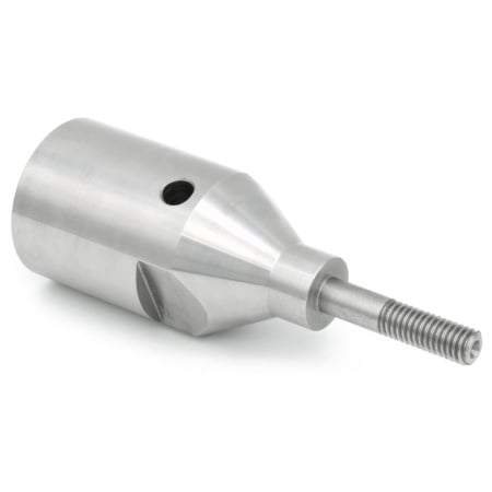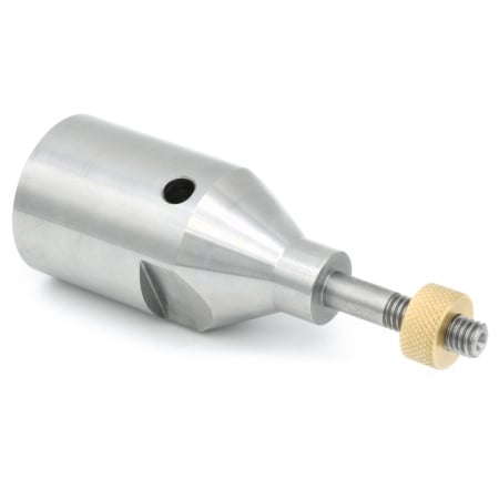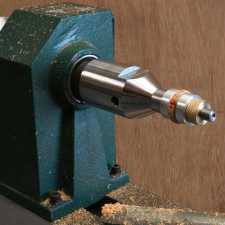 When you look at the tool in detail, you’ll see that it’s precision machined from solid steel and threaded to fit directly onto your lathes spindle, the single piece design with 60 degree dimple on the end of the shaft for tailstock support guarantees perfect concentricity every time.