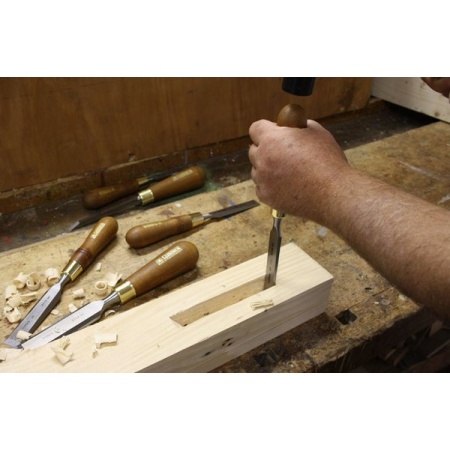 Chisels are supplied with chisel edge guard with hanger 8716 that is also suitable for bevel edge chisels.