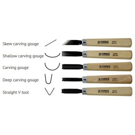 Products > Tools & Machines > Hand Tools > Carving & Woodworking Chisels > Narex Set of carving chisels START in leather tool roll