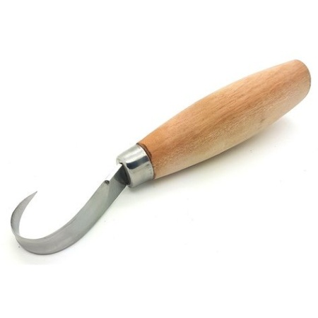 This quality Scandinavian pattern Spoon knife features a finely ground and polished blade made from 1095 high carbon tool steel which is hardened to 58-62 Hrc and a handle from selected beech with a steel ferrule. Hook or spoon knives as they are also called are very popular items with spoon carvers and green woodworkers.